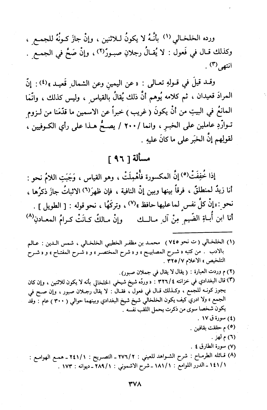 ورده الخلخالي بأنه لا يكون للاثنين، وإن جاز كونه للجمع، وكذلك قال في فعول: لا يقال رجلان صبور، وإن صح في الجمع. انتهى.