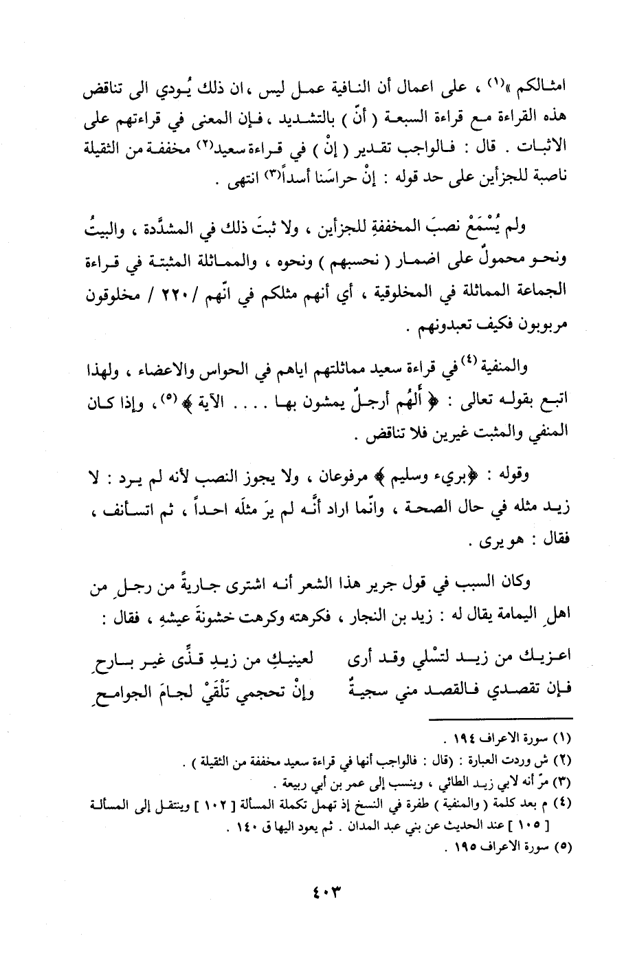 ولم يُسْمَعْ نصبَ المخففةِ للجزأين, ولا ثبتَ ذلك في المشدَّدة, والبيتُ ونحو محمولٌ على إضمار (نحسبهم) ونحوه, والمماثلة المثبتة في قراءة الجماعة المماثلة في المخلوقية, أي أنهم مثلكم في أنهم /220/ مخلوقون مربوبون فكيف تعبدونهم.