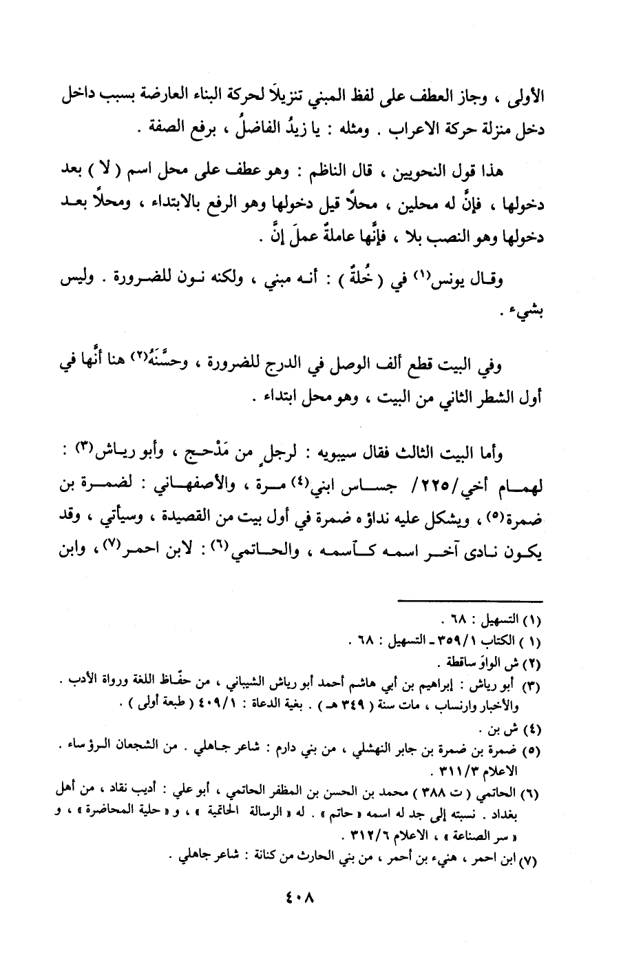 وأما البيت الثالث فقال سيبوية: لرجلٍ من مَدْحج, وأبو رياش: لهمام أخي /225/ جساس ابني مرة, والأصفهاني: لضمرة بن ضمرة, ويشكل عليه ندلؤه ضمرة في أول بيت من القصيدة, وسيأتي, وقد يكون نادي آخر اسمه كأسمه, والحاتمي: لابن احمر, وابن