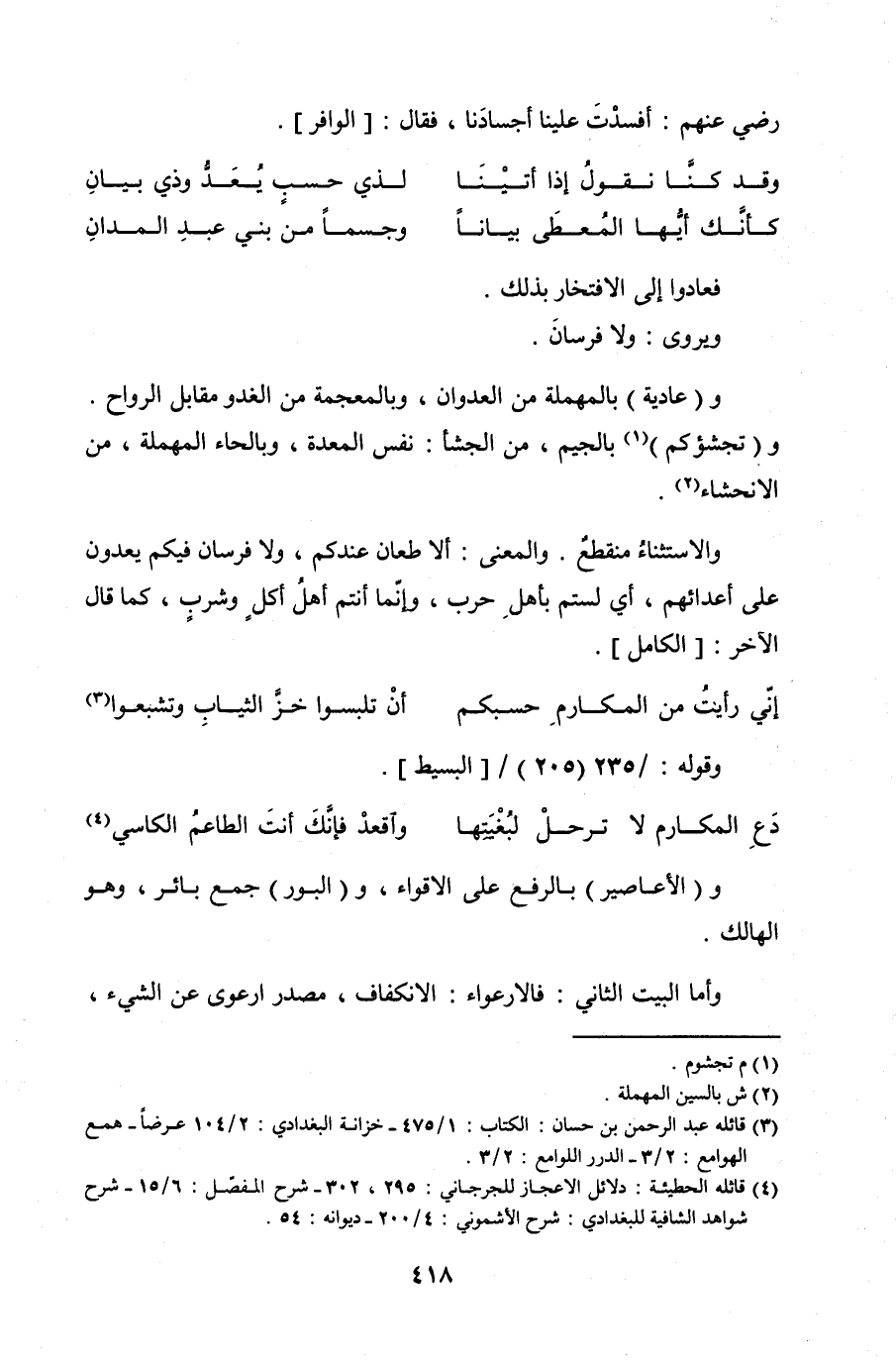 (إنّي رأيتُ من المكارم حسبكم ... أنْ تلبسوا خزَّ الثيابِ وتشبحوا)