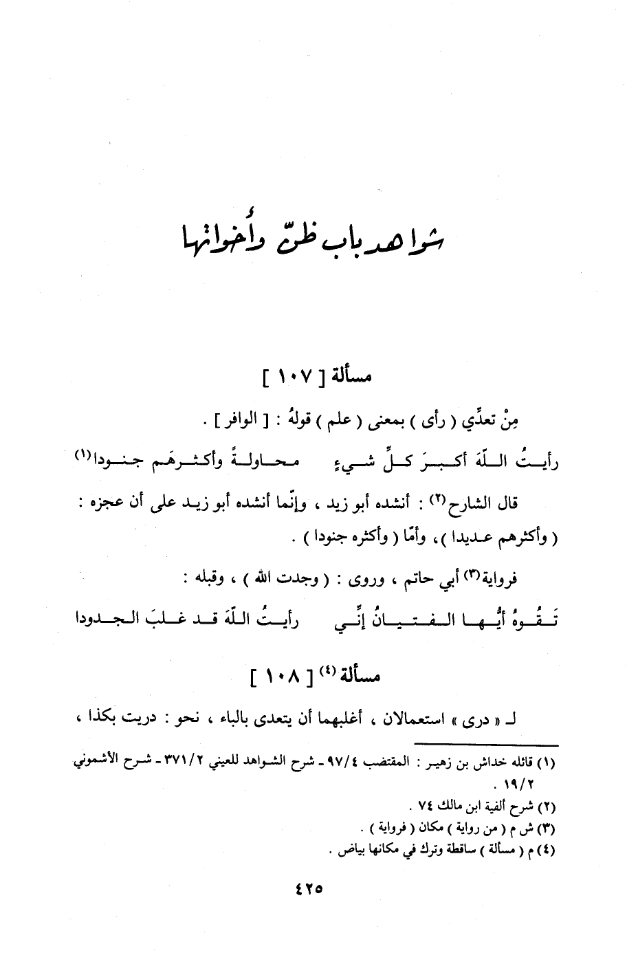 مِنْ تعدِّي (رأى) بمعنى (علم) قولهُ: [الوافر].