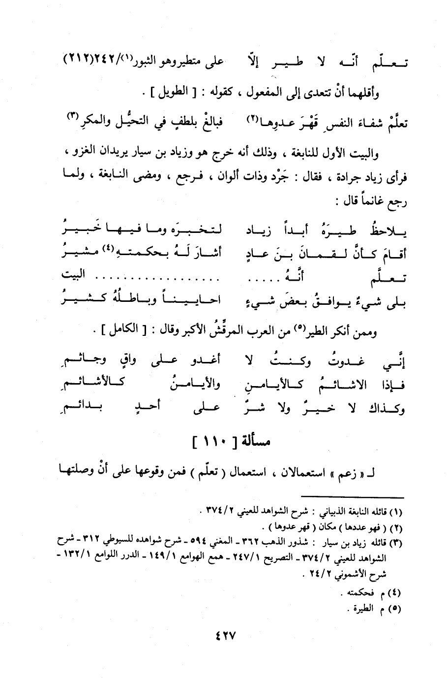 (تعلّم أنّه لا طير إلّا ... على متطير وهو الثبور) /242 (212)