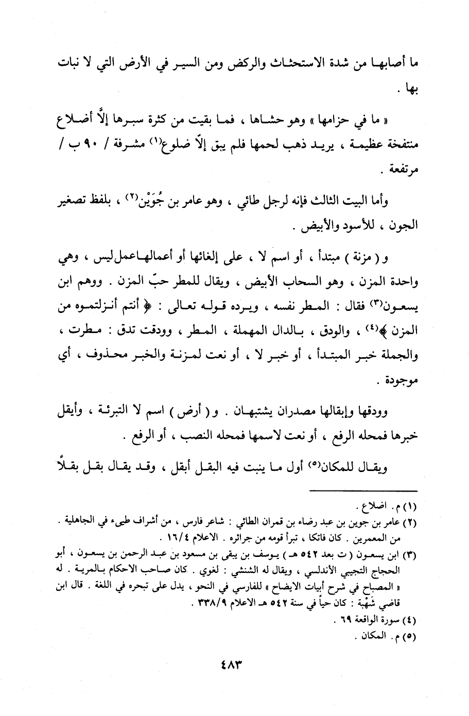 وأما البيت الثالث فإنه لرجل طائي، وهو عامر بن جُوَيْن، بلفظ تصغير الجون، للأسود والأبيض.
