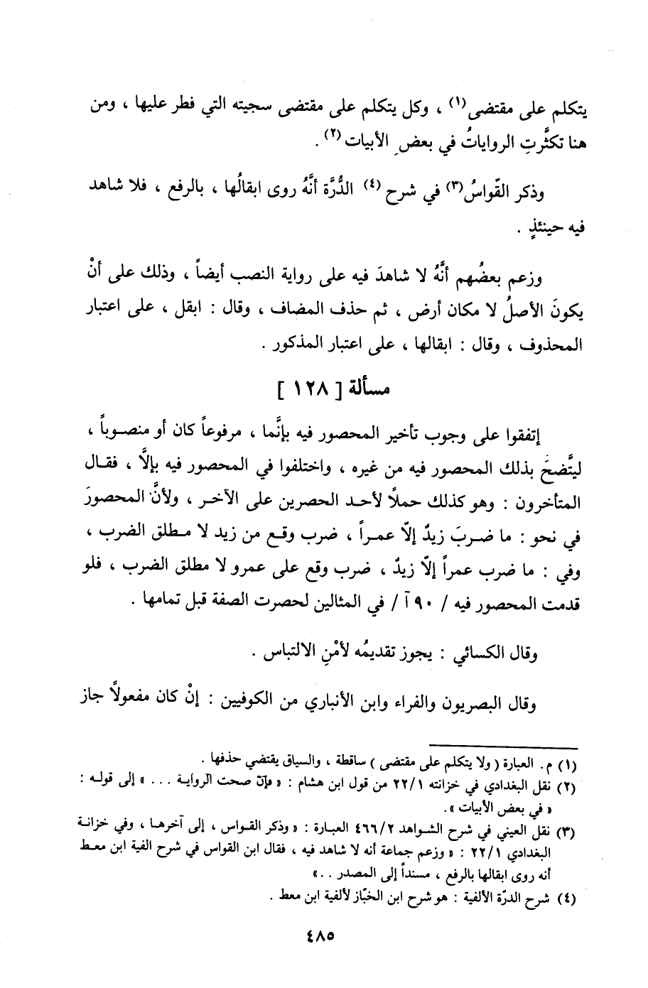 وذكر القَواسُ في شرح الدُّرَّة أنَّهُ روى ابقالُها، بالرفع، فلا شاهد فيه حينئذٍ.