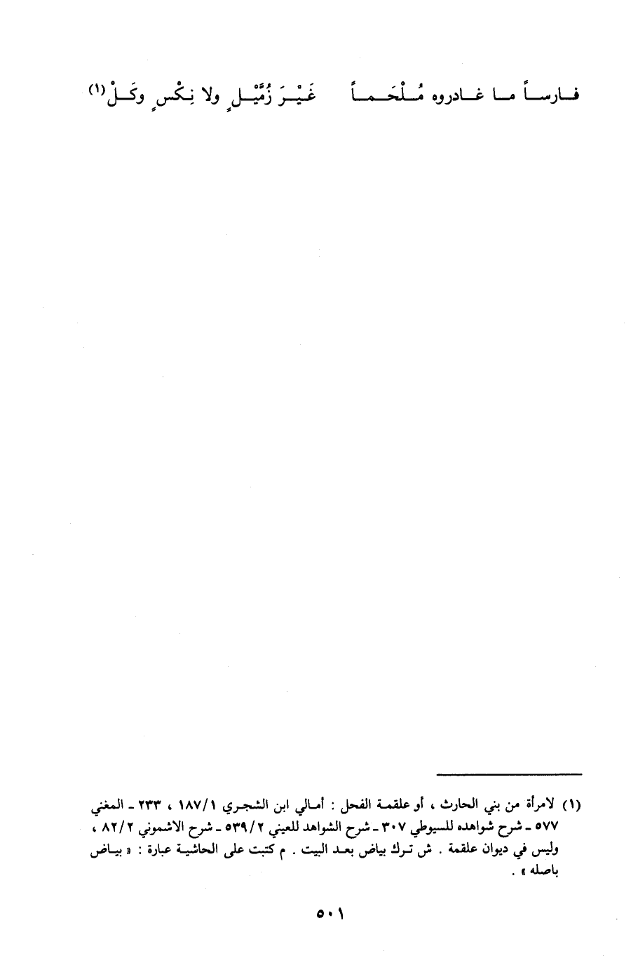 (فارسًا ما غادروه مُلْحَمًا ... غَيْرَ زُمَّيْلٍ ولا نِكْسٍ وكَلْ)