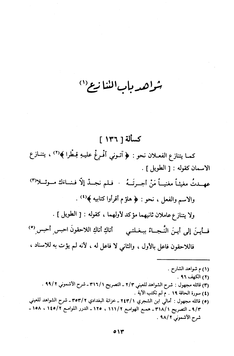 كما يتنازع الفعلان نحو: {آتُونِي أُفْرِغْ عَلَيْهِ قِطْرًا} [الكهف:96]، يتنازع الاسمان كقوله: [الطويل].