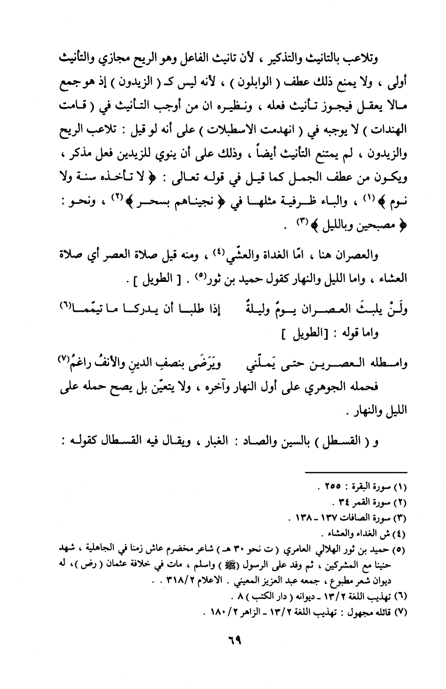 والعصران هما، إما الغداة والعشي، ومنه قيل صلاة العصر أي صلاة العشاء، وأما الليل والنهار كقول حميد بن ثور. [الطويل].