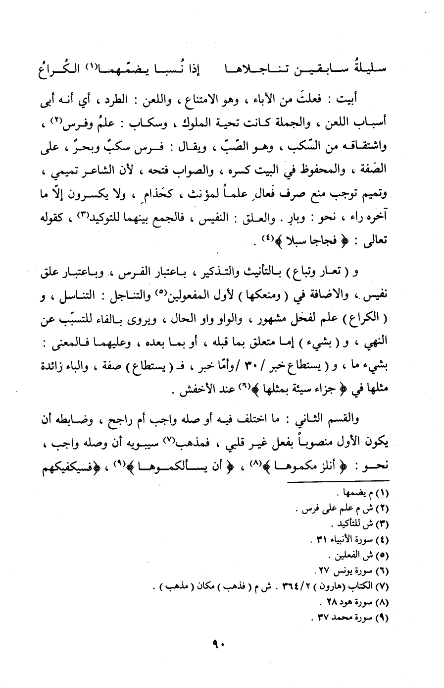 و (تعار وتباع) بالتأنيث والتذكير، باعتبار الفرس، وباعتبار علق نفيس، والإضافة في (ومنعكها) لأول المفعولين والتناجل: التناسل، و (الكراع) علم لفحل مشهور، والواو واو الحال، ويروى بالفاء للتسبب عن النهي، و (بشيء) إما متعلق بما قبله، أو بما بعده، وعليهما فالمعنى: بشيء ما، و (يستطاع خبر /30/ وأمّا خبر، فـ (يستطاع) صفة، والباء زائدة مثلها في {جَزَاء سَيّئَةٍ بِمِثْلِهَا} عند الأخفش.