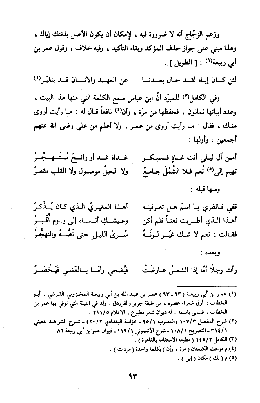 وزعم الزجّاج أنه لا ضرورة فيه، لإمكان أن يكون الأصل بلغتك إياك، وهذا مبني على جواز حذف المؤكد وبقاء التأكيد، وفيه خلاف، وقول عمر بن أبي ربيعة: [الطويل].