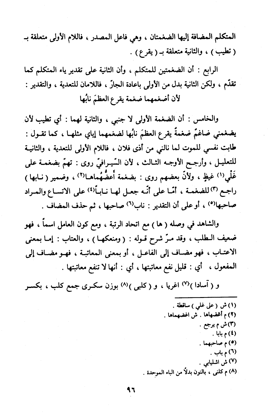 والخامس: أن الضغمة الأولى لأجنبي، والثانية لهما، أي: تطيب لأن يضغمني ضاغمٌ ضغمةٌ يقرع العظمَ نابُها لضغمهما إياي مثلها، كما تقول: طابت نفسي بالموت لما نالني من أذى فلان. واللام الأولى للتعدية والثانية للتعليل، وأرجح الأوجه الثالث؛ لأن السيرافي روى: تهمّ بضغمة علي على غيظٍ، ولأنّ بعضهم روى: لغضمة أَعضُّهُماها. وضمير نابها راجع للضغمة إما على أنه جعل لها نابًا على الاتساع، والمراد صاحبها، أو على أن التقدير: ناب صاحبها ثم حذف المضاف.