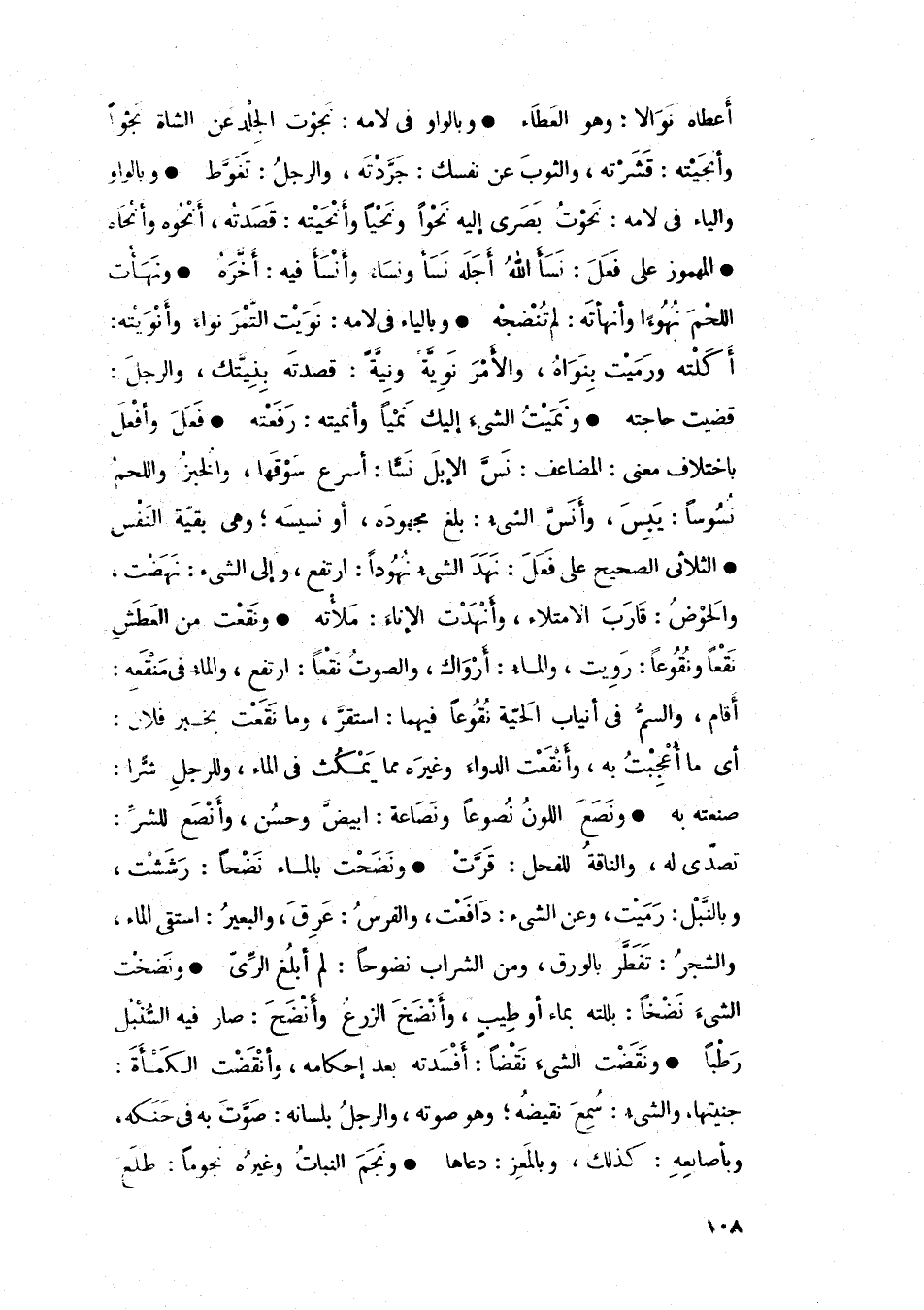 • ونقعت من العطش نقعاً ونقوعاً: رويت، والماء: أرواك، والصوت نقعاً: ارتفع، والماء في منقعة: أقام، والسم في أيناب الحية نقوعاً فيهما: استقر، وما نقعت بخبر فلان: أي ما أعجبت به، وأنقعت الدواء وغيره ما يمكث في الماء، وللرجل شراً: صنعته به