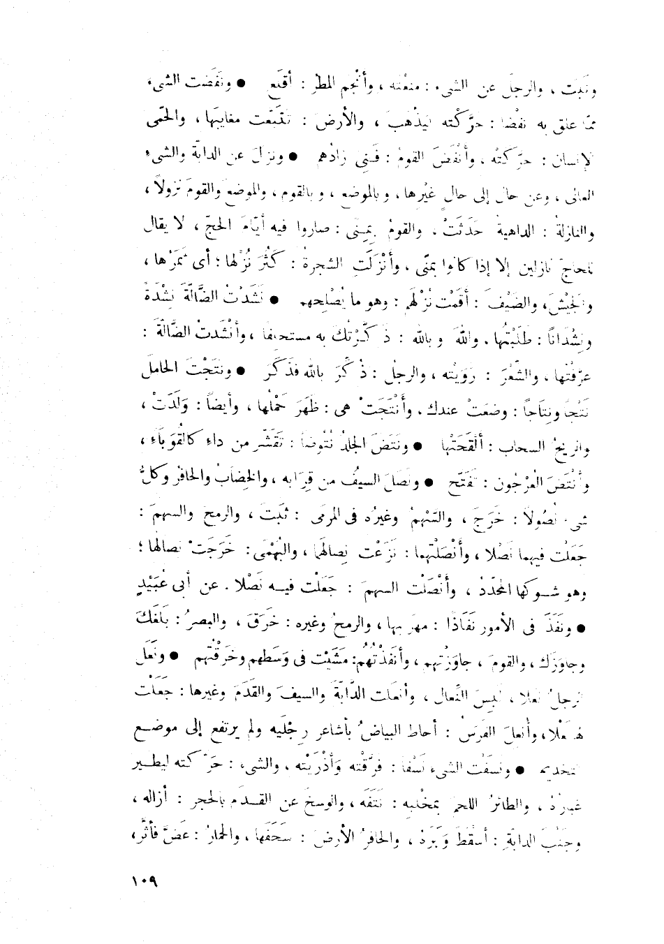 • ونصل السيف من قرا به، والخضاب والحافر وكل شيء نصولاً: خرج، والسهم وغيره في المرمي: ثبت، والرمح والسهم: جعلت فيهما نصلاً، وأنصلتهما: نزعت نصالهما، والبهمي: خرجت نصالها؛ وهو شوكها المحدد، وأنصلت السهم: جعلت فيه نصلاً، عن أبي عبيد