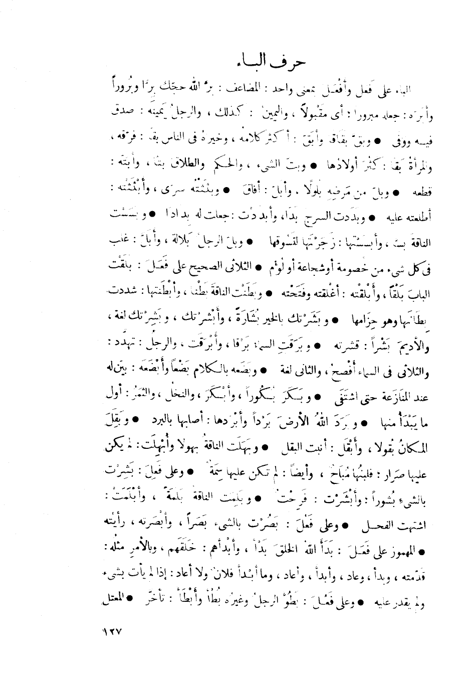 • المهموز على فَعَلَ: بدأ الله الخلق بدأ، وأبدأهم: خلقهم، وبالأمر مثله: قدمته، وبدأ، وعاد، وأبدأ، وأعاد، وما أبدأ فلان ولا أعاد: إذا لم يأت بشيء ولم يقدر عليه
