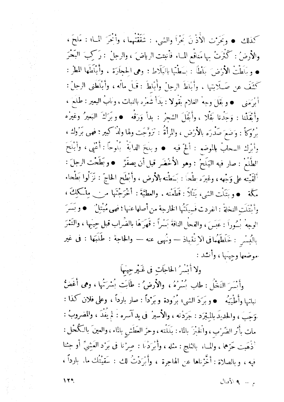 • وبحرت الأذن بحراً والشيء: شققتهما، وابحر الماء: ملح، والأرض: كثرت بها مناقع الماء فأنبتت الرياض، والرجل: ركب البحر