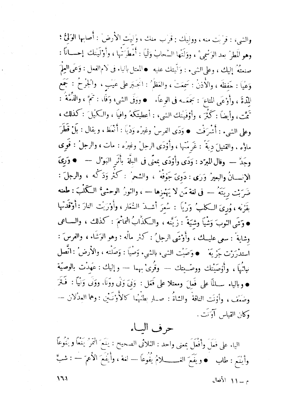 • المعتل بالياء في لام الفعل: وَعَى العِلمَ وعياً: حَفِظه، والأذنُ: سمعتْ، والعظمُ: انجبر على عيبٍ، والجُرحُ: جمع المِدة، وأوعى المتاع: جمعه في الوِعاء