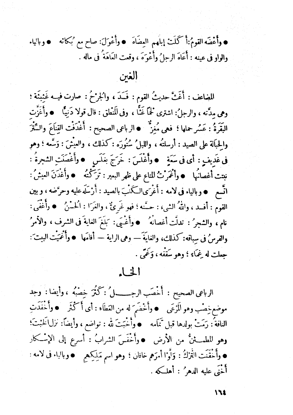 المضاعف: أغثَّ حديث القوم: فسد، والجُرحُ: صارت فيه غَثِيثة؛ وهي مِدته، والرجل: اشترى لحماً غثًّا، وفي المنطق: قال قولاً دنيًّا