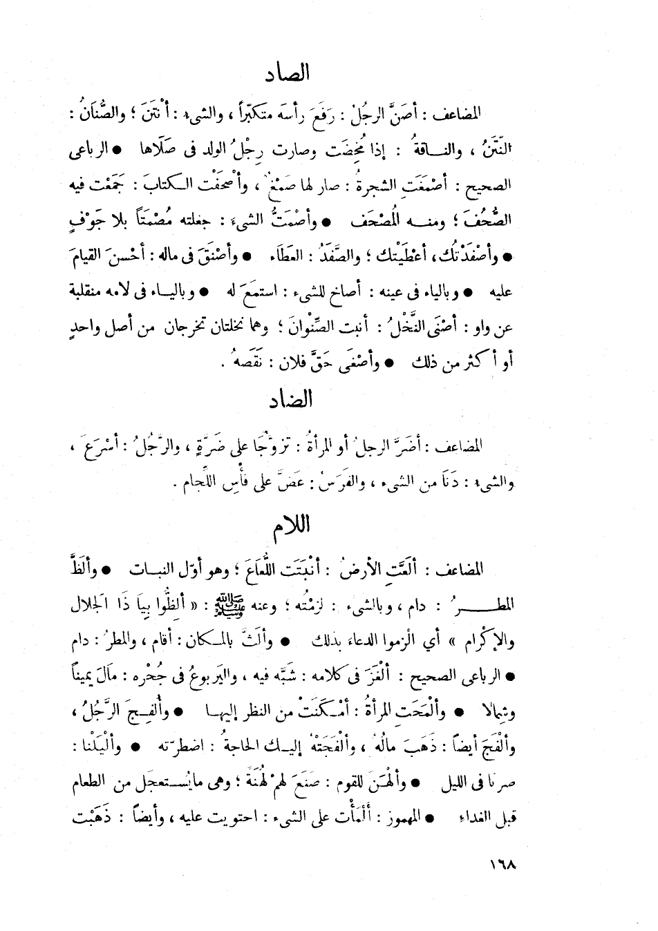 • الرباعي الصحيح: أصمغت الشجرة: صار لها صمغٌ، وأصحفت الكتاب: جمعت فيه الصحف؛ ومنه المُصحف