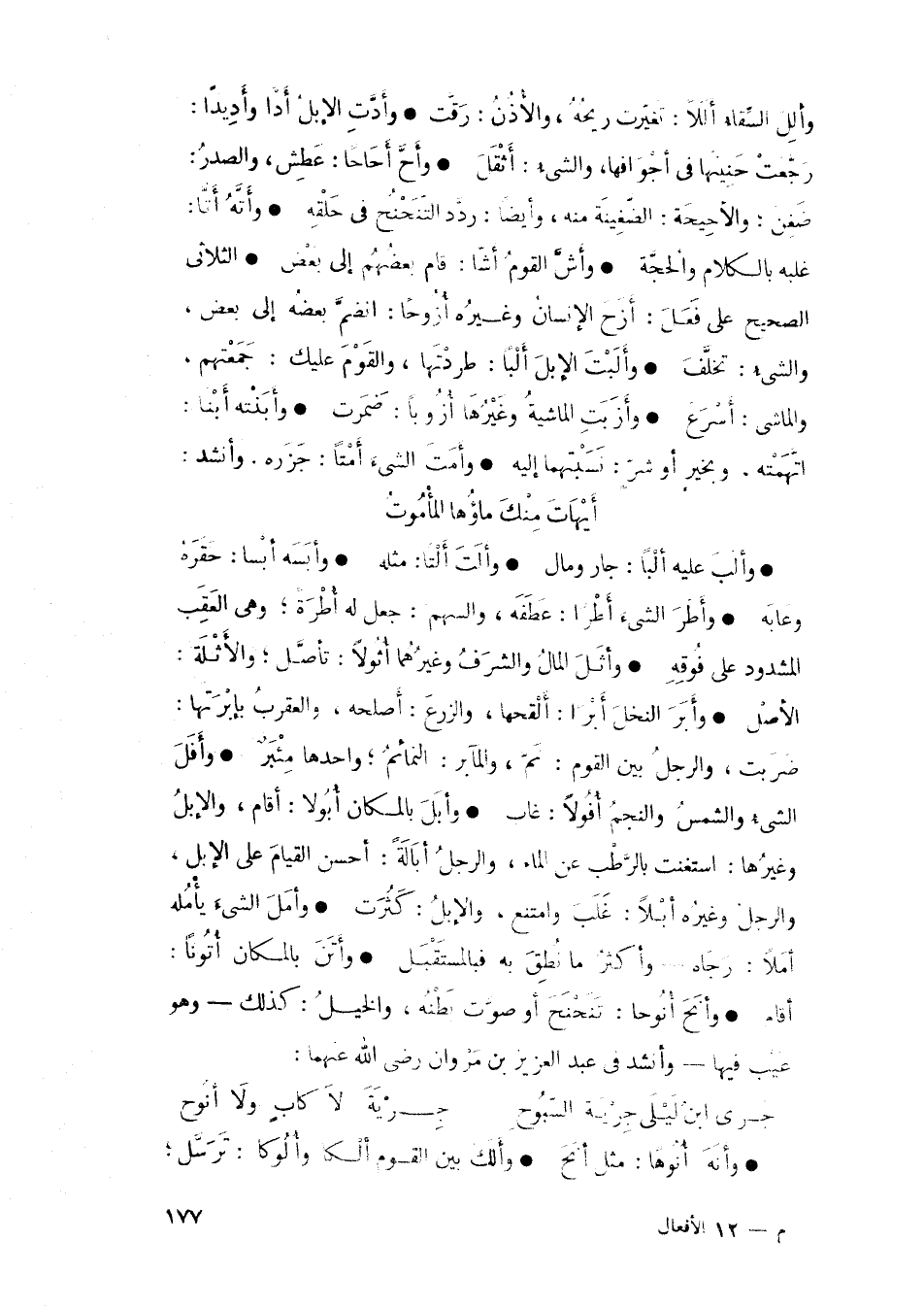 • وأبل بالمكان أُبولا: أقام، والإبل وغيرها: استغنت بالرطب عن الماء، والرجلُ أبالةً: أحسن القيام على الإبل، والرجلُ وغيره أبلاً: غَلَب وامتنع، والإبلُ: كَثُرَت