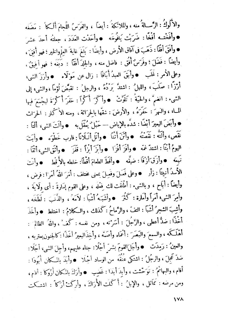• وأفق أفقاً: ذهب في آفاق الأرض، وأيضاً: بلغ غاية العلم والخير؛ فهو أفِقٌ، وأيضاً: فضَلَ؛ وفَرَسٌ أُفُق: فاضل منه، والجلد أفقاً: دبغه؛ فهو أفيقٌ، وعلى الأمر: غلب