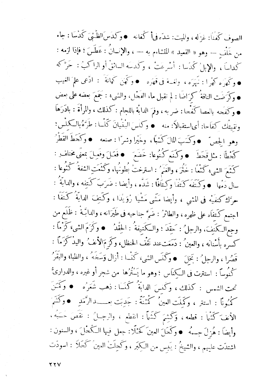 • وكفحه بالعصا كفحا: ضربه، وفم الدابة باللجام: كذلك، والمرأة: بادرها ولقيتك كفاحا: أي استقبالاً: منه
