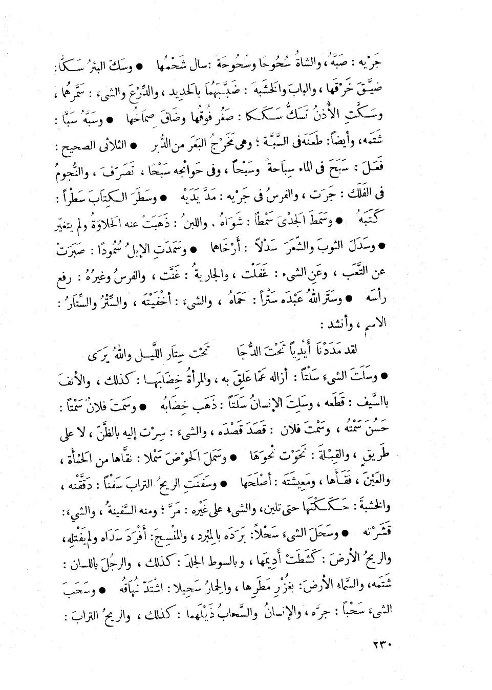 • الثلاثي الصحيح: فعل: سبح في الماء سباحة وسبحاُ: وفي حوائجه سبحا، تصرف، والنجوم في الفلك: جرت، والفرس في جريه: مد يديه