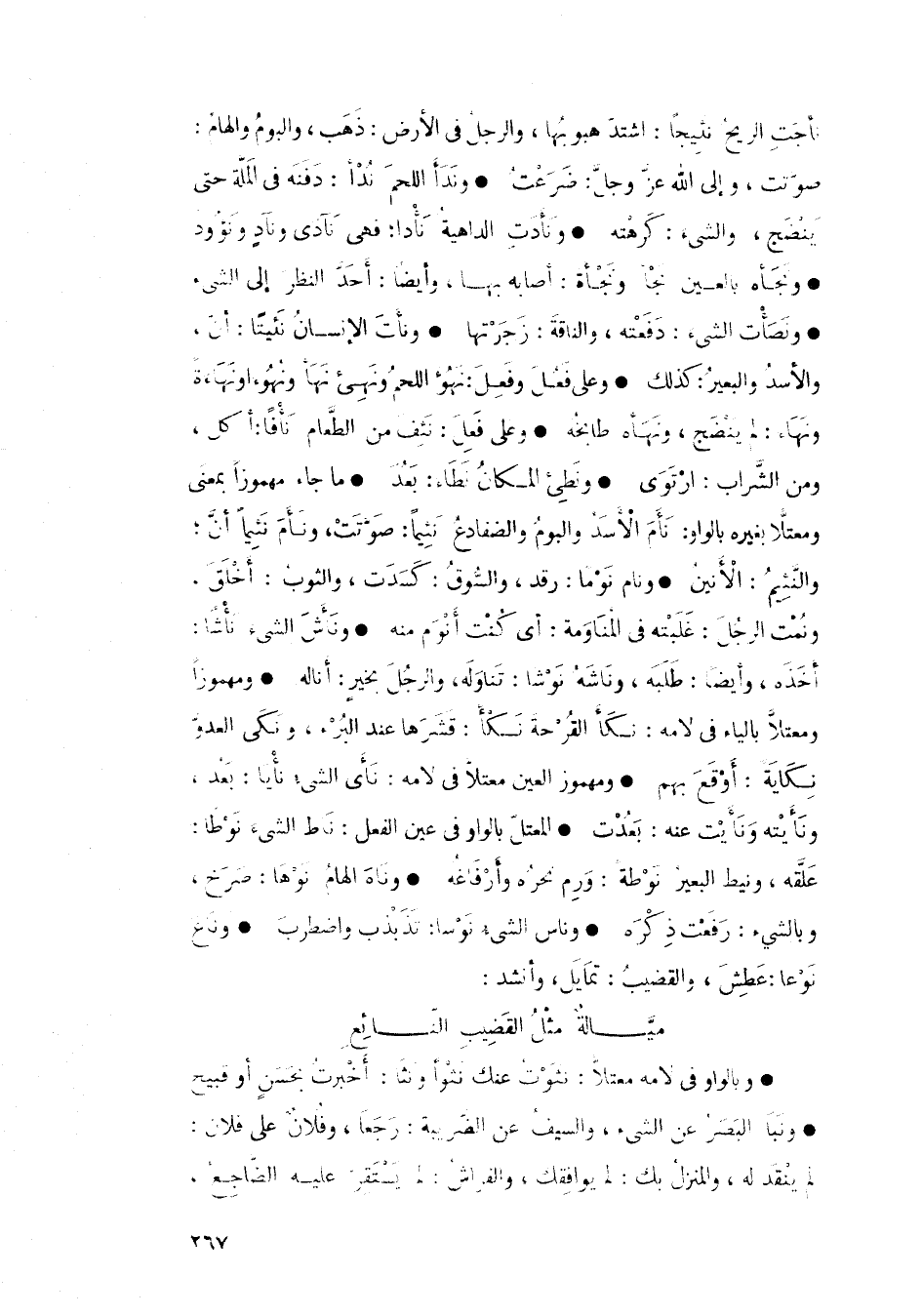 • المعتل بالواو في عين الفعل: ناط الشيء نوطا: علقه، ونيط البعير توطة: ورم نحره وأرفاعه
