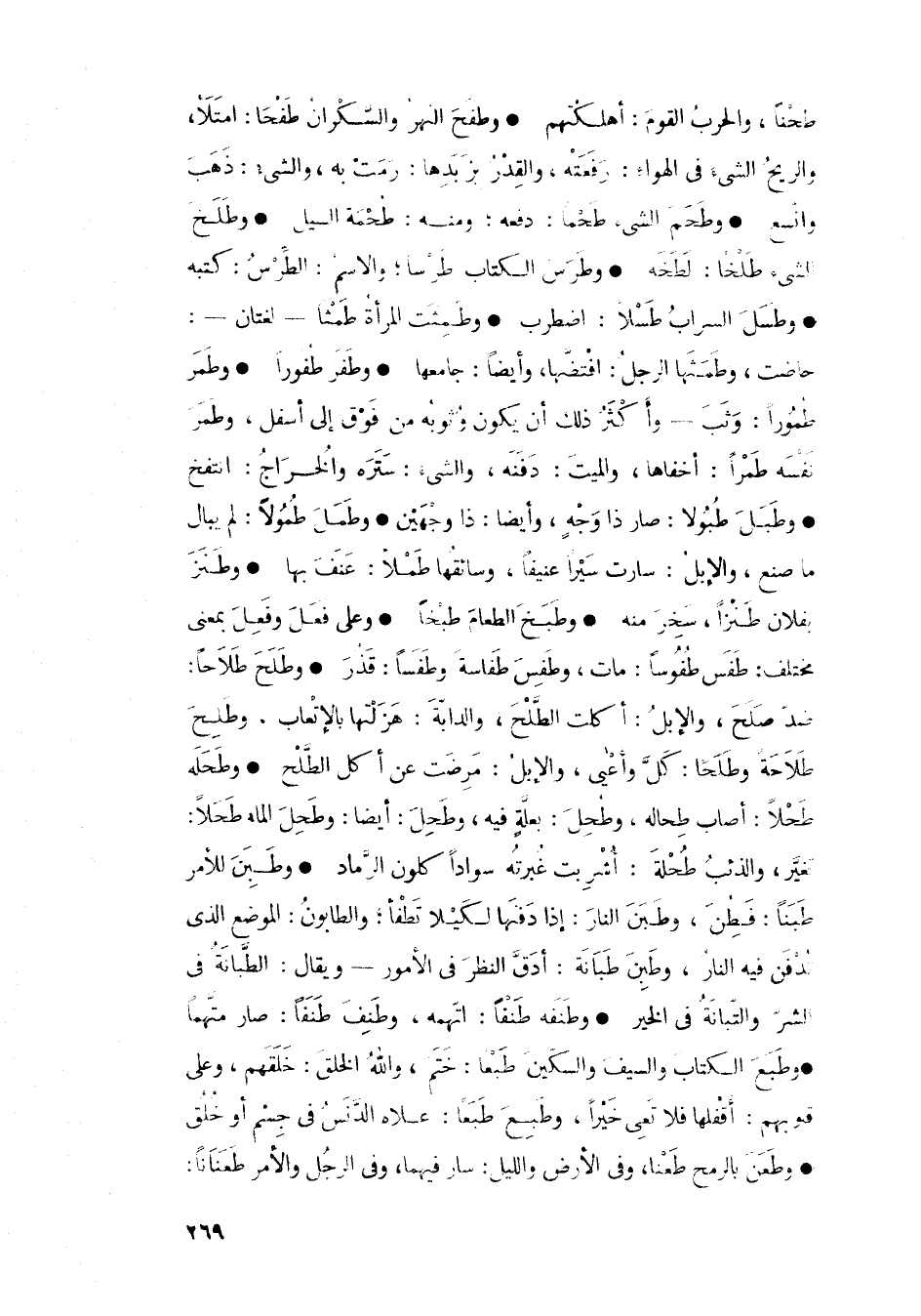 • وطبع الكتاب والسيف والسكين طبعاً: ختم، والله الخلق: خلقهم، وعلى قلوبهم: أقفلها فلا تعي خيراً، وطبع طبعًا: علاه الدنس في جسم أو خلق