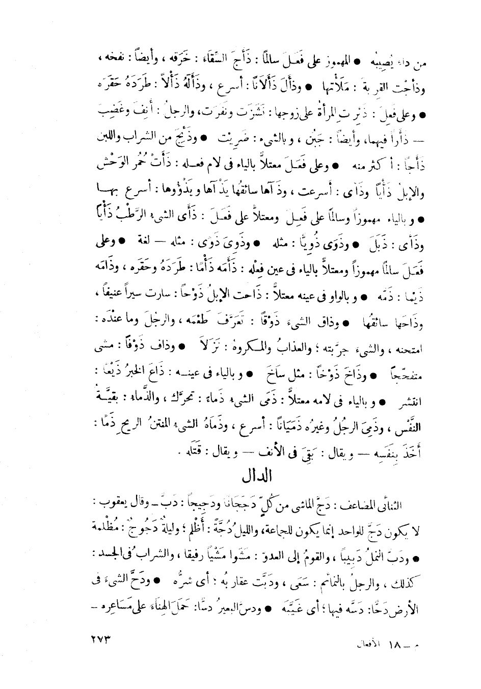 • وعلى فعل معتلًّا بالياء فى لام فعله: ذأت حمر الوحش والإبل ذأيًا وذأى: أسرعت، وذآها سائقها يذآها ويذؤوها: أسرع بها