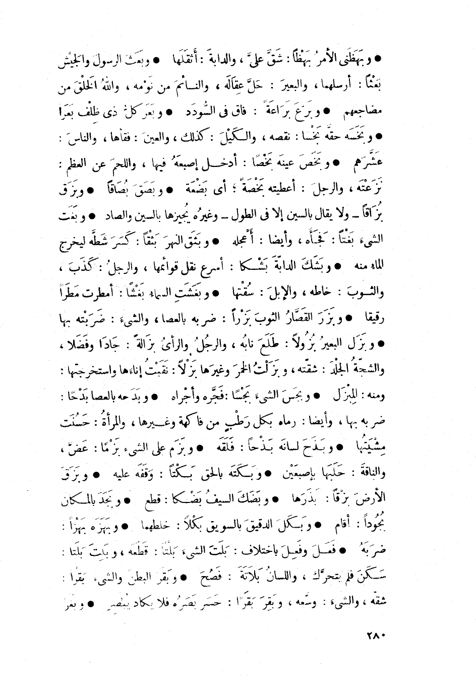 • وبزق بزاقًا - ولا يقال بالسين إلا فى الطول - وغيره يجيزها بالسين والصاد