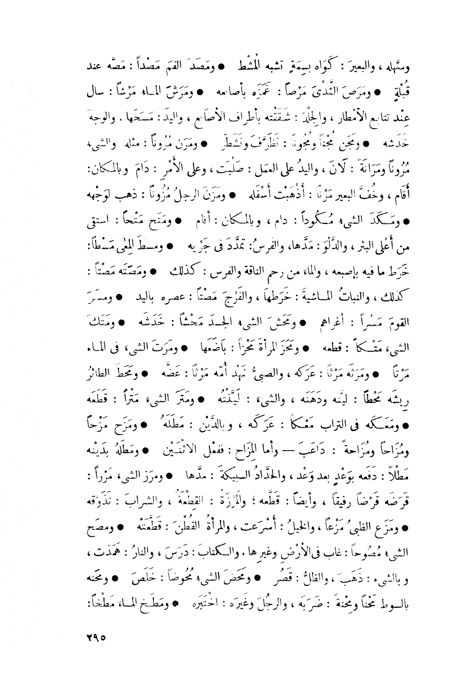 • ومرز الشيء مرراً: قرضه قرضاً رفيقاً، وأيضاً: قطَّعه؛ والمرزة: القطعة، والشراب: تذوقه