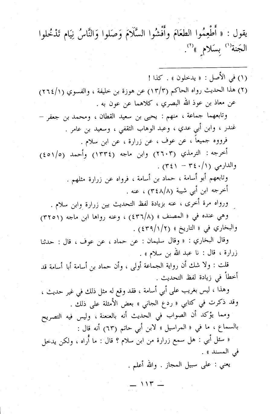 151 - حَدَّثَنَا بِشْرُ بن مُوسَى، قَالَ: حَدَّثَنَا هُوذَةُ بن خَلِيفَةَ، وَحَدَّثَنَا أَبُو مُسْلِمٍ الْكَشِّيُّ، قَالَ: حَدَّثَنَا مُعَاذُ بن عَوْذِ اللَّهِ الْقُرَشِيُّ، قَالا: حَدَّثَنَا عَوْفٌ، عَنْ زُرَارَةَ بن أَوْفَى، عَنْ عَبْدِ اللَّهِ بن سَلامٍ، قَالَ: لَمَّا قَدِمَ رَسُولُ اللَّهِ صَلَّى اللَّهُ عَلَيْهِ وَسَلَّمَ الْمَدِينَةَ انْجَفَلَ النَّاسُ قِبَلَهُ، فَكُنْتُ فِيمَنْ خَرَجَ، فَلَمَّا رَأَيْتُ وَجْهَهُ عَرَفْتُ أَنَّهُ لَيْسَ بِوَجْهِ كَذَّابٍ، فَكَانَ أَوَّلَ مَا سَمِعْتُهُ،@