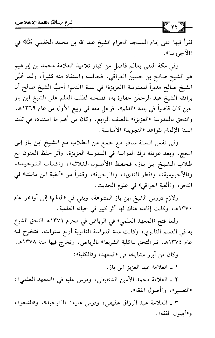 فقرأ فيها على إمام المسجد الحرام الشيخ عبدالله بن محمد الخليفي رحمه الله في «الآجرومية».