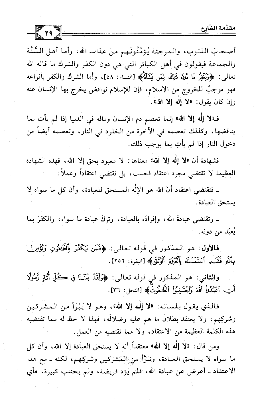 ومن قال: «لا إله إلا الله» معتقداً أنه لا يستحق العبادة إلا الله، وأن كل ما سواه لا يستحق العبادة، وتبرَّأ من المشركين وشركِهم، لكنه -مع هذا الاعتقاد- اعرض عن عبادة الله، فلم يؤد فريضة، ولم يجتنب كبيرة، فأي