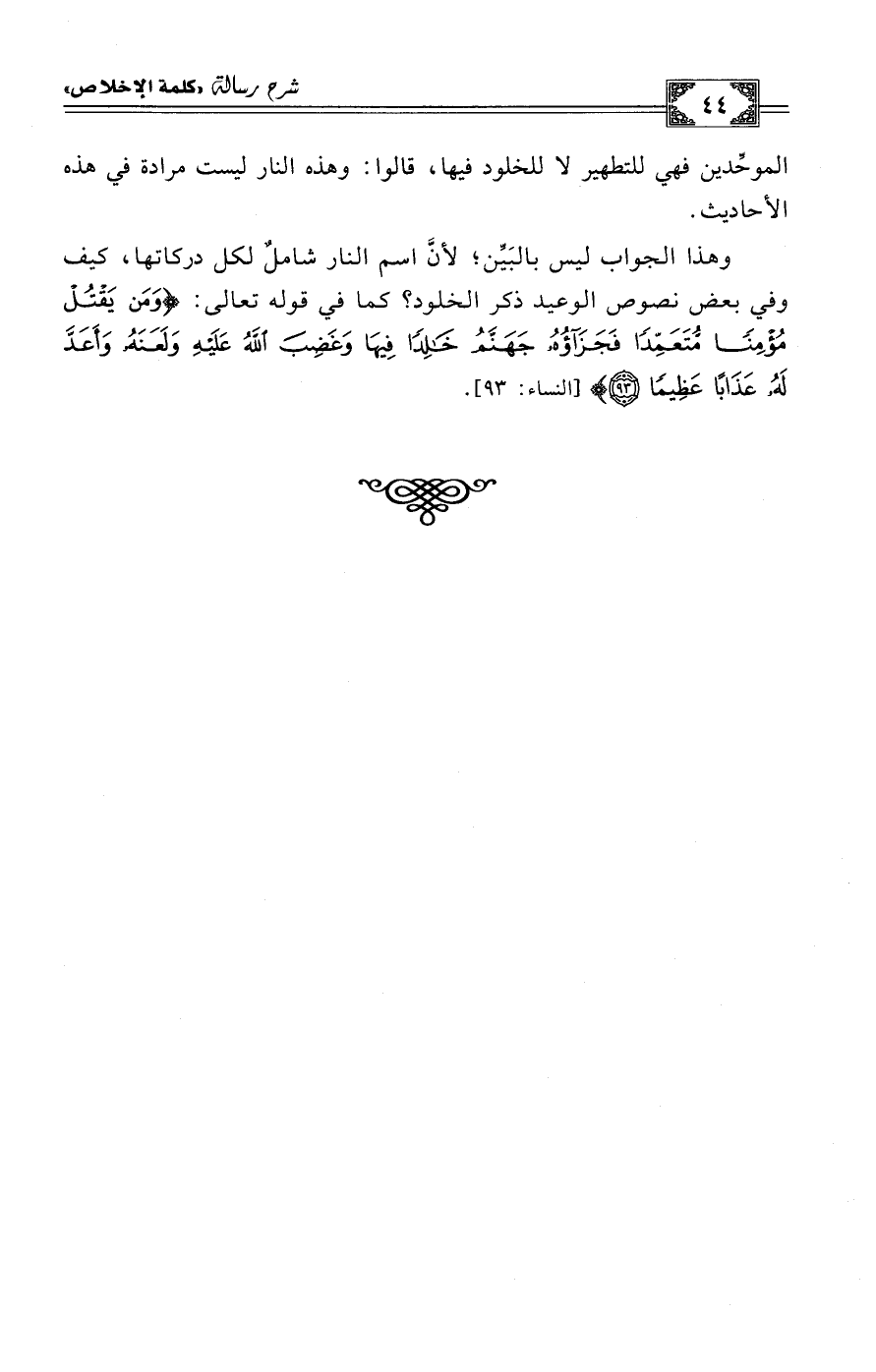 وهذا الجواب ليس بالبَيِّن؛ لأنَّ اسم النار شاملٌ لكل دركاتها، كيف وفي بعض نصوص الوعيد ذكر الخلود؟ كما في قوله تعالى: {ومن يقتل مؤمنا متعمدا فجزاؤه جهنم خالدا فيها وغضب الله عليه ولعنه وأعد له عذابا عظيما} [النساء:93].