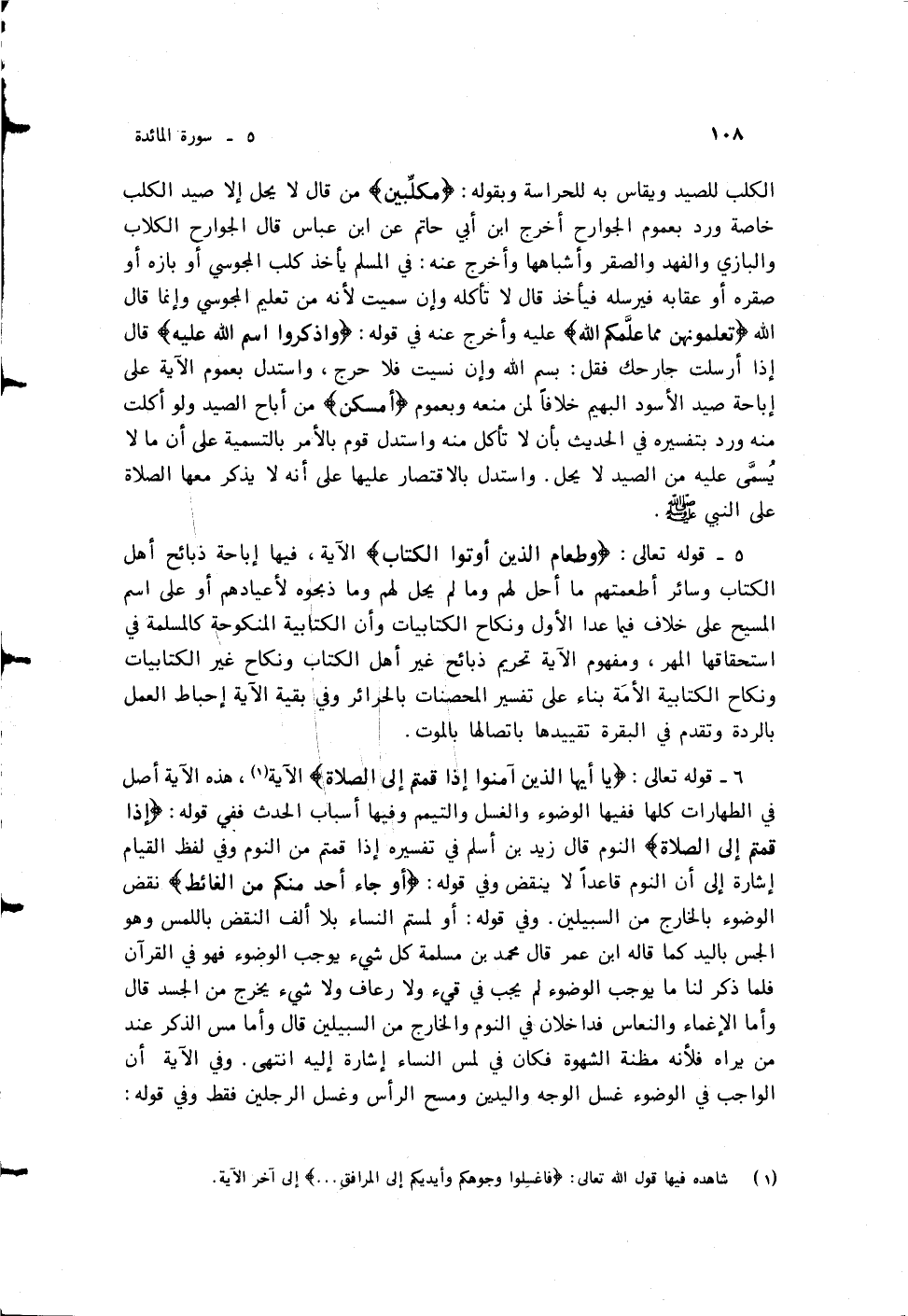 6- قوله تعالى: {يَا أَيُّهَا الَّذِينَ آمَنُوا إِذَا قُمْتُمْ إِلَى الصَّلَاةِ} الآية.