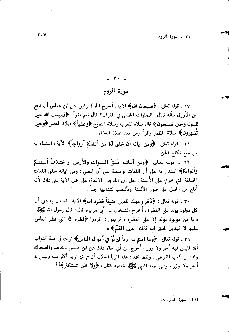 30- قوله تعالى: {فَأَقِمْ وَجْهَكَ لِلدِّينِ حَنِيفًا فِطْرَتَ اللَّهِ} الآية.