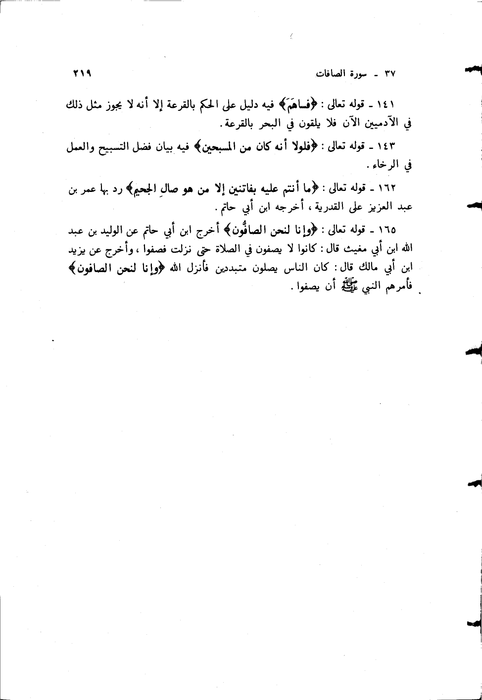 أخرج ابن أبي حاتم عن الوليد بن عبد الله ابن أبي مغيث قال: كانوا لا يصفون في الصلاة حتى نزلت فصفوا، وأخرج عن يزيد ابن أبي مالك قال: كان الناس يصلون متبددين فأنزل الله {وَإِنَّا لَنَحْنُ الصَّافُّونَ}