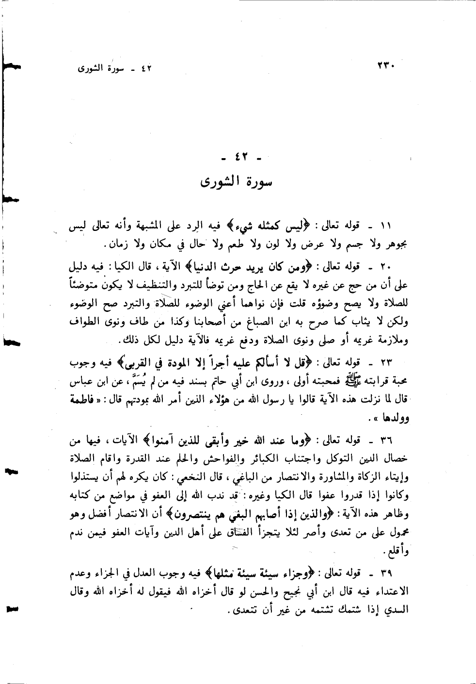 23- قوله تعالى: {قُلْ لَا أَسْأَلُكُمْ عَلَيْهِ أَجْرًا إِلَّا الْمَوَدَّةَ فِي الْقُرْبَى}