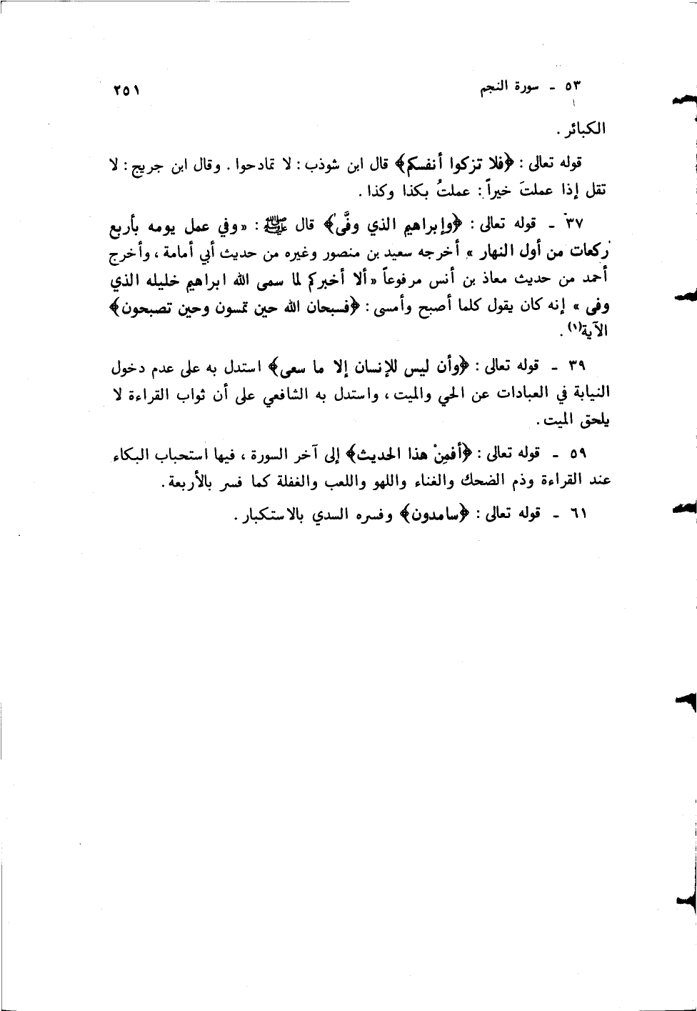 إلى آخر السورة، فيها استحباب البكاء عند القراءة وذم الضحك والغناء واللهو واللعب والغفلة كما فسر بالأربعة.