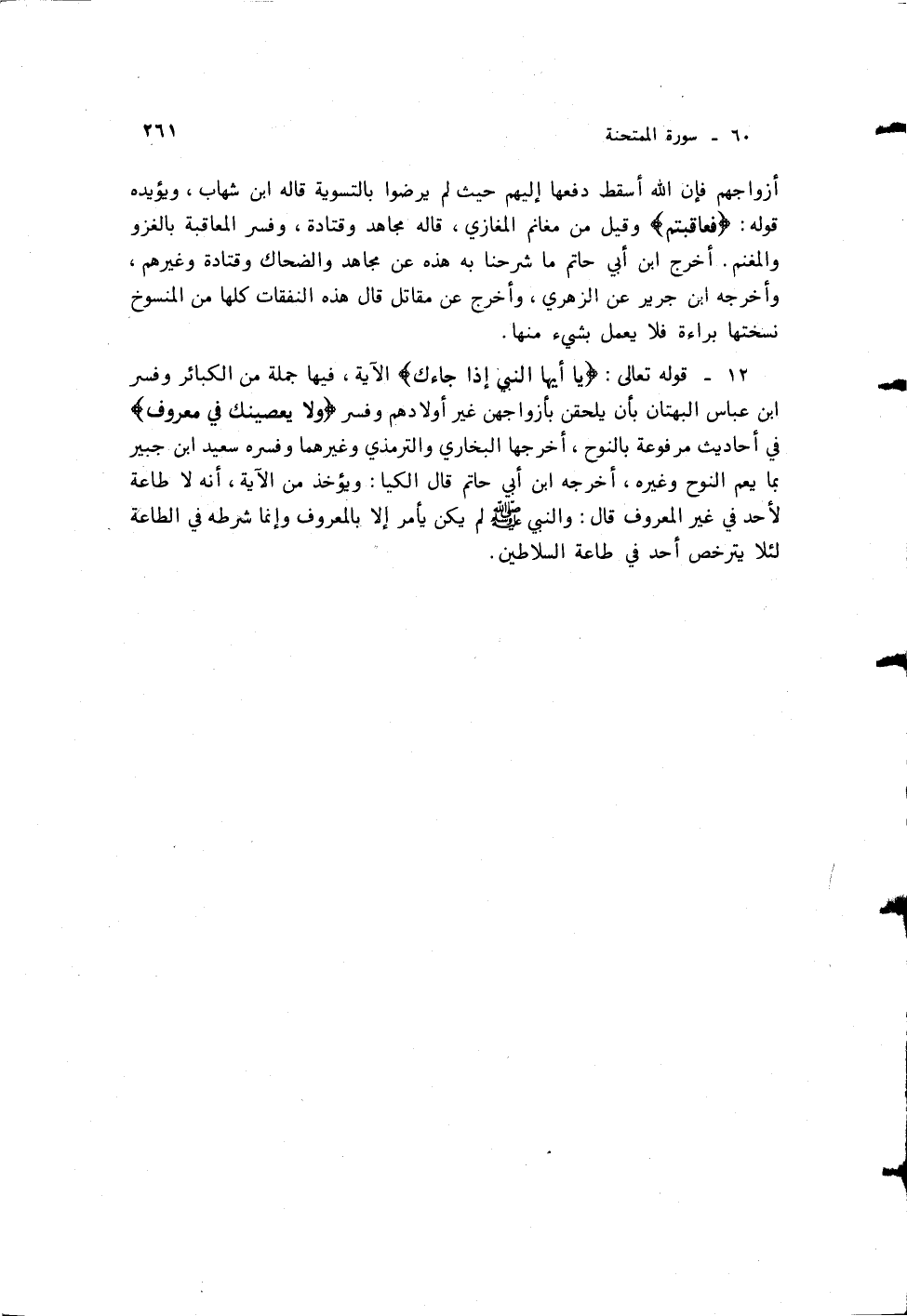 فيها جملة من الكباءر وفسر ابن عباس البهتان بأن يلحقن بأزوجهن غير أولادهم وفسر {وَلَا يَعْصِينَكَ فِي مَعْرُوفٍ}