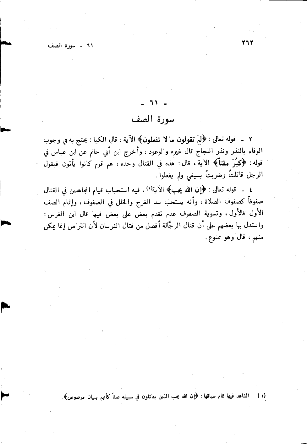 2- قوله تعالى: {لِمَ تَقُولُونَ مَا لَا تَفْعَلُونَ} الآية.