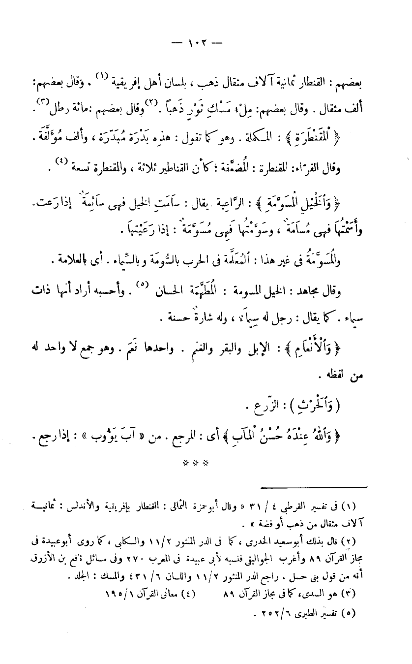 (1) في تفسير القرطبي 4/31 "وقال أبو حمزة الثمالي: القنطار بإفريقية والأندلس: ثمانية آلاف مثقال من ذهب أو فضة".
