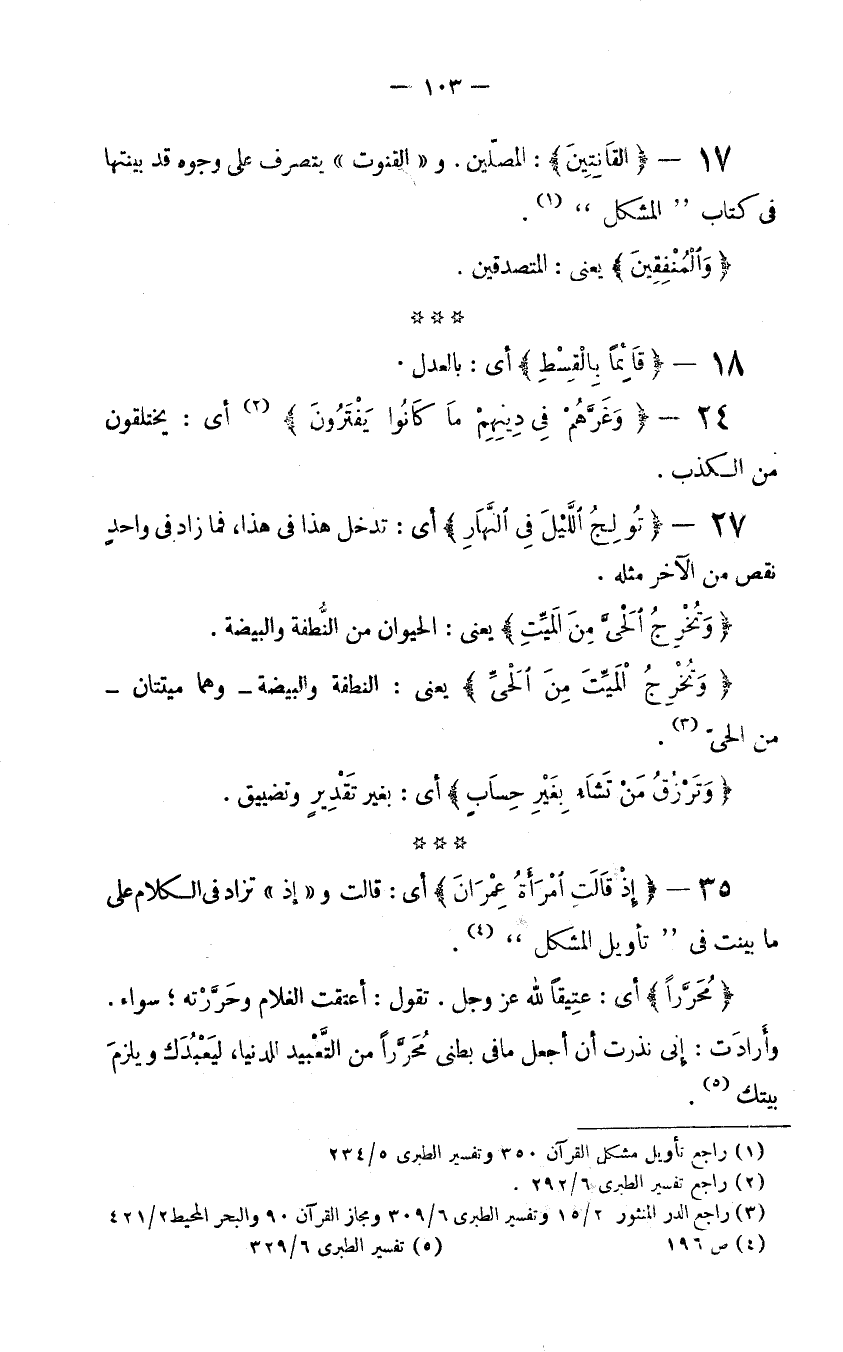 17- {وَالْقَانِتِينَ} المصلّين. و"القنوت" يتصرف على وجوه قد بينتها في كتاب "مشكل" (1) .