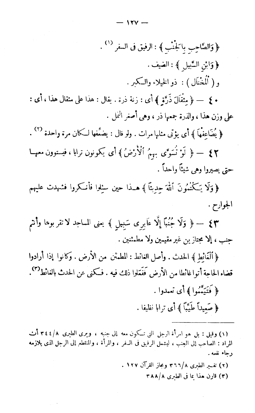 43- {وَلا جُنُبًا إِلا عَابِرِي سَبِيلٍ} يعني المساجد لا تقربوها وأنتم جنب إلا مجتازين غير مقيمين ولا مطمئنين.
