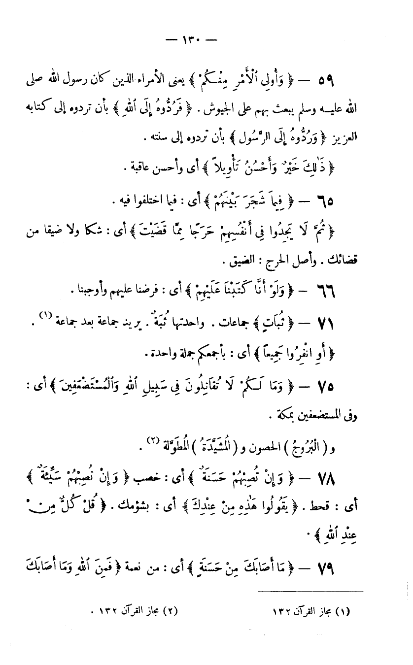 59- {وَأُولِي الأَمْرِ مِنْكُمْ} يعني الأمراء الذين كان رسول الله صلى الله عليه وسلم يبعث بهم على الجيوش.