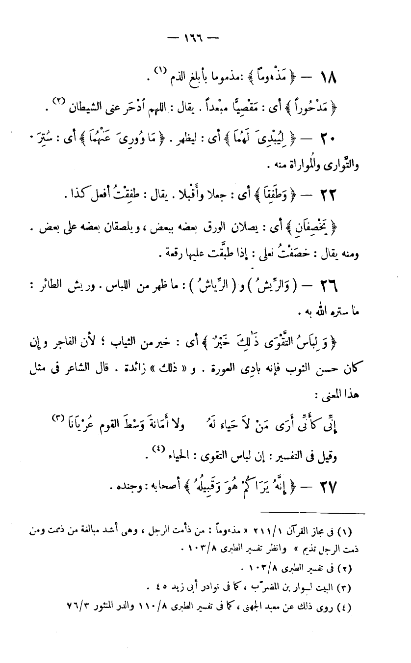 (1) في مجاز القرآن 1/211 "مذءوما: من ذأمت الرجل، وهي أشد مبالغة من ذممت ومن ذمت الرجل تذيم" وانظر تفسير الطبري 8/103.