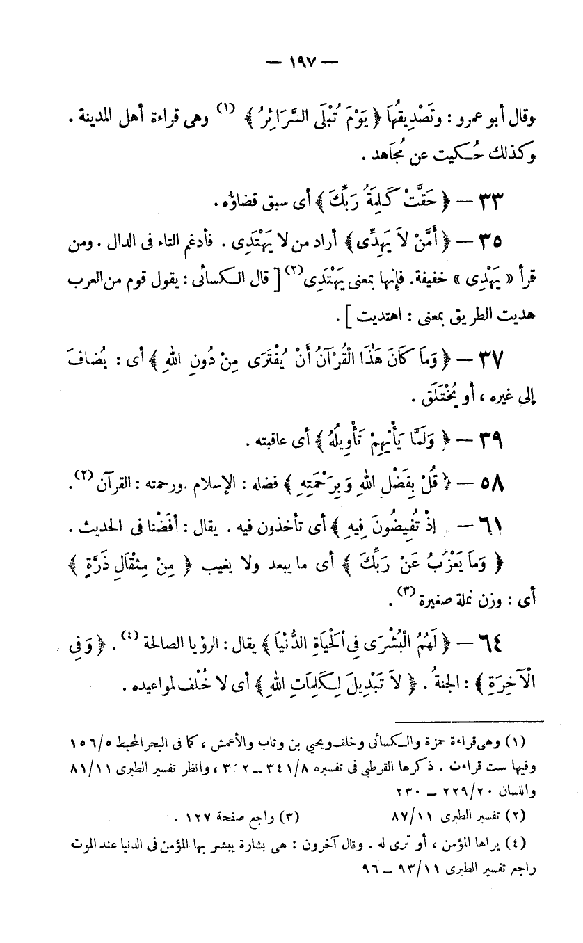 (1) والقراءة بالتاء، قراءة حمزة والكسائي وخلف ويحيى بن وثاب والأعمش وجمهور القراء بالباء، كما في البحر المحيط 5/156 وفيها ست قراءات. ذكرها القرطبي في تفسيره 8/341-342، وانظر تفسير الطبري 11/81 واللسان 20/229-230.