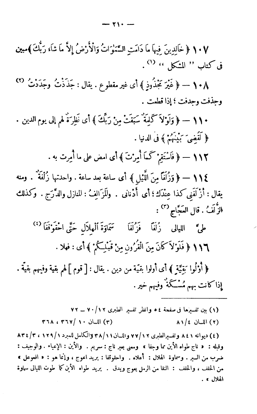107- {خَالِدِينَ فِيهَا مَا دَامَتِ السَّمَاوَاتُ وَالأَرْضُ إِلا مَا شَاءَ رَبُّكَ} مبيَّن في كتاب "المشكل" (1) .