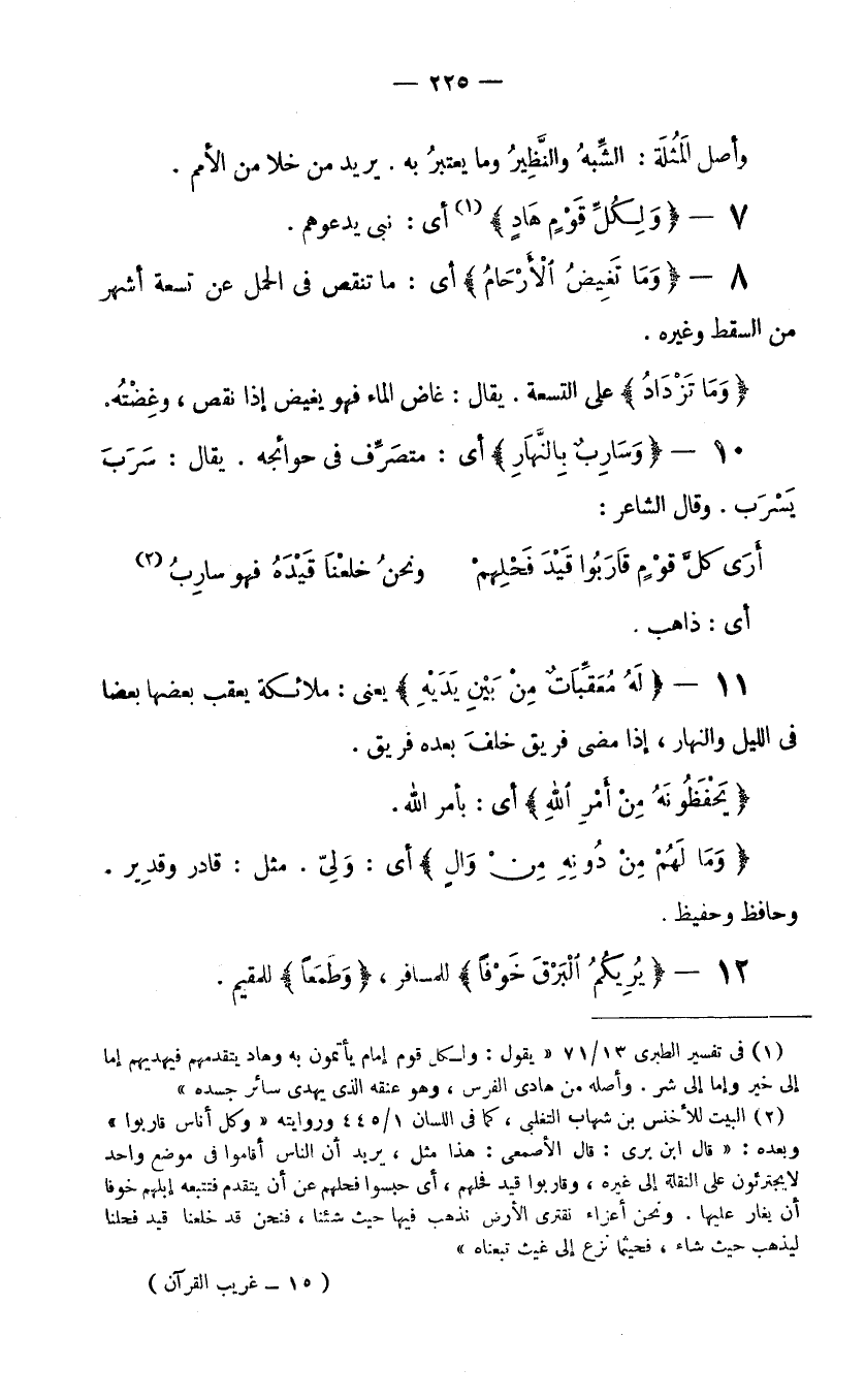 (1) في تفسير الطبري 13/71 "يقول: ولكل قوم إمام يأتمون به وهاد يتقدمهم فيهديهم إما إلى خير وإما إلى شر. وأصله من هادي الفرس، وهو عنقه الذي يهدي سائر جسده".