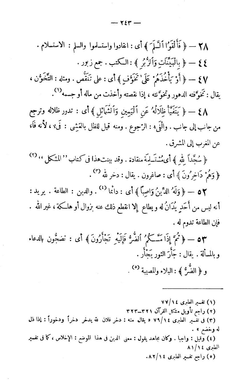 52- {وَلَهُ الدِّينُ وَاصِبًا} أي: دائما (3) . والدين: الطاعة. يريد: أنه ليس من أَحَدٍ يُدَانُ له ويطاع إلا انقطع ذلك عنه بزوال أو هلكة، غير الله. فإن الطاعة تدوم له.